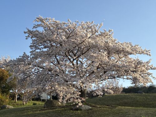 帰り際🌇夕日をあびた一本桜に感動しました。